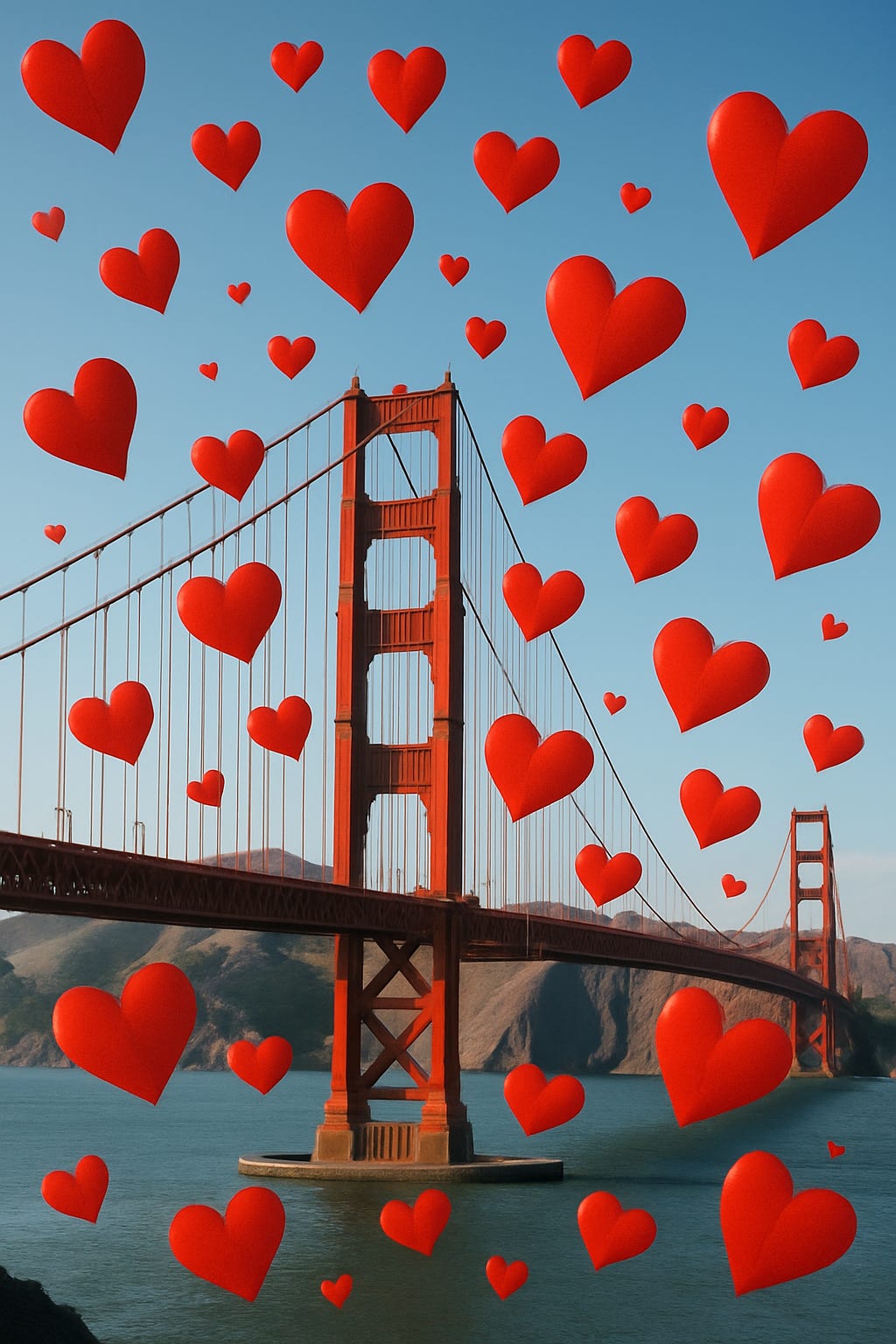 In between them stands the Golden Gate Bridge, a magnificent masterwork of engineering indifference. The city of San Francsco installed wire nets to catch would-be suicides.I'm not sure the motives were entirely concern for life. Part of it had to be a defense against those last words. And throwing a shadow on tourism. But, hey, walk from one side to another, from the past to the future or vice-versa: your selfies will circle the globe. Attentive observers might find inadvertent shades.